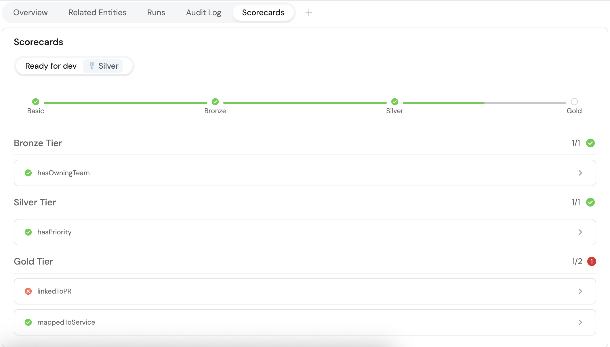 Scorecards give users a quick, visual way to understand the health, quality, compliance, and readiness of their services or assets.
