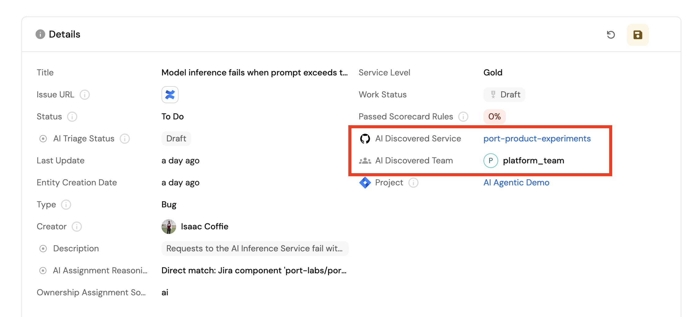 "description": "AI agent that automatically discovers services and team ownership for Jira issues",