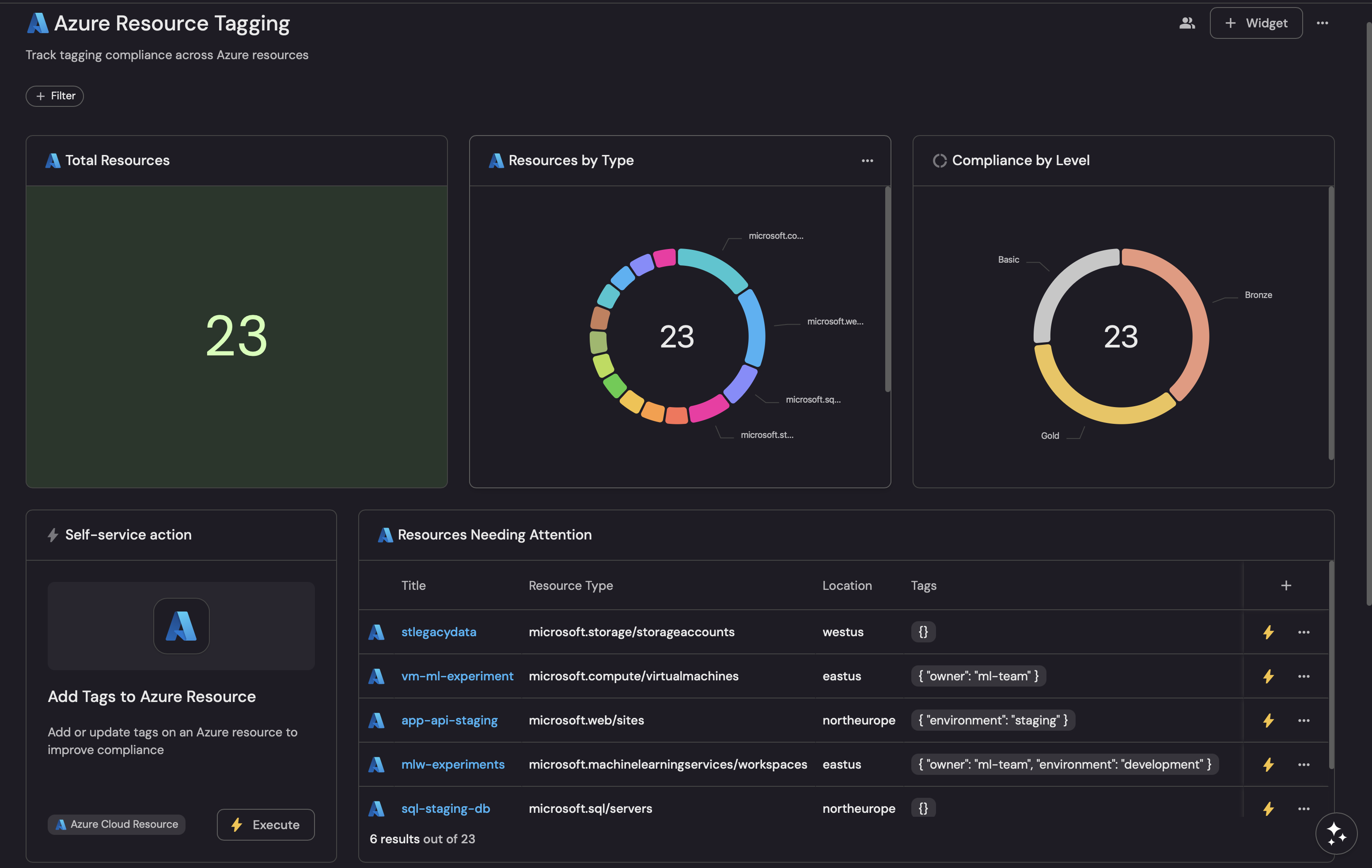 With your data, scorecard, and action in place, let's create a dashboard to visualize tagging compliance across your Azure resources.