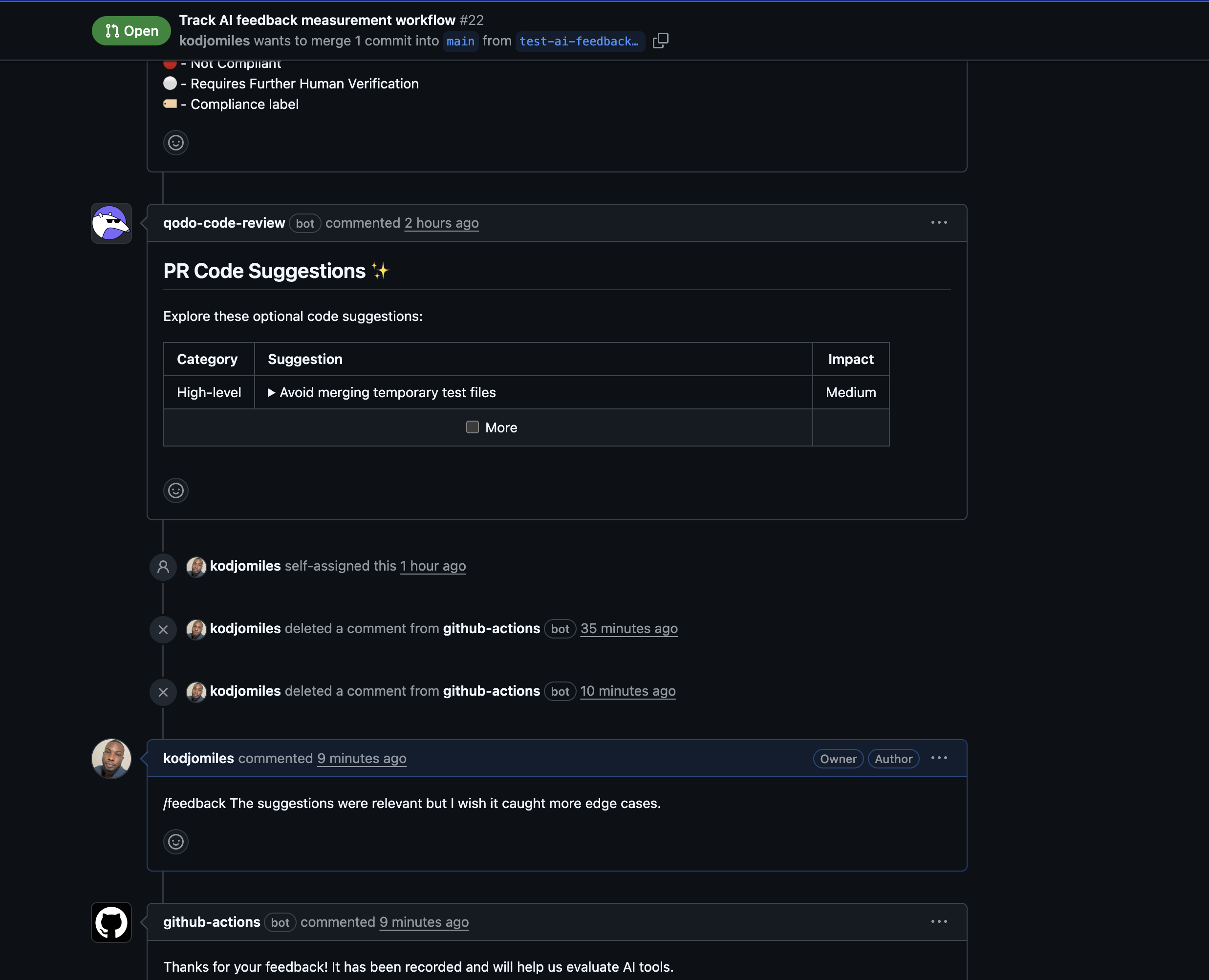 - A feedback collection mechanism triggered from GitHub PR comments.