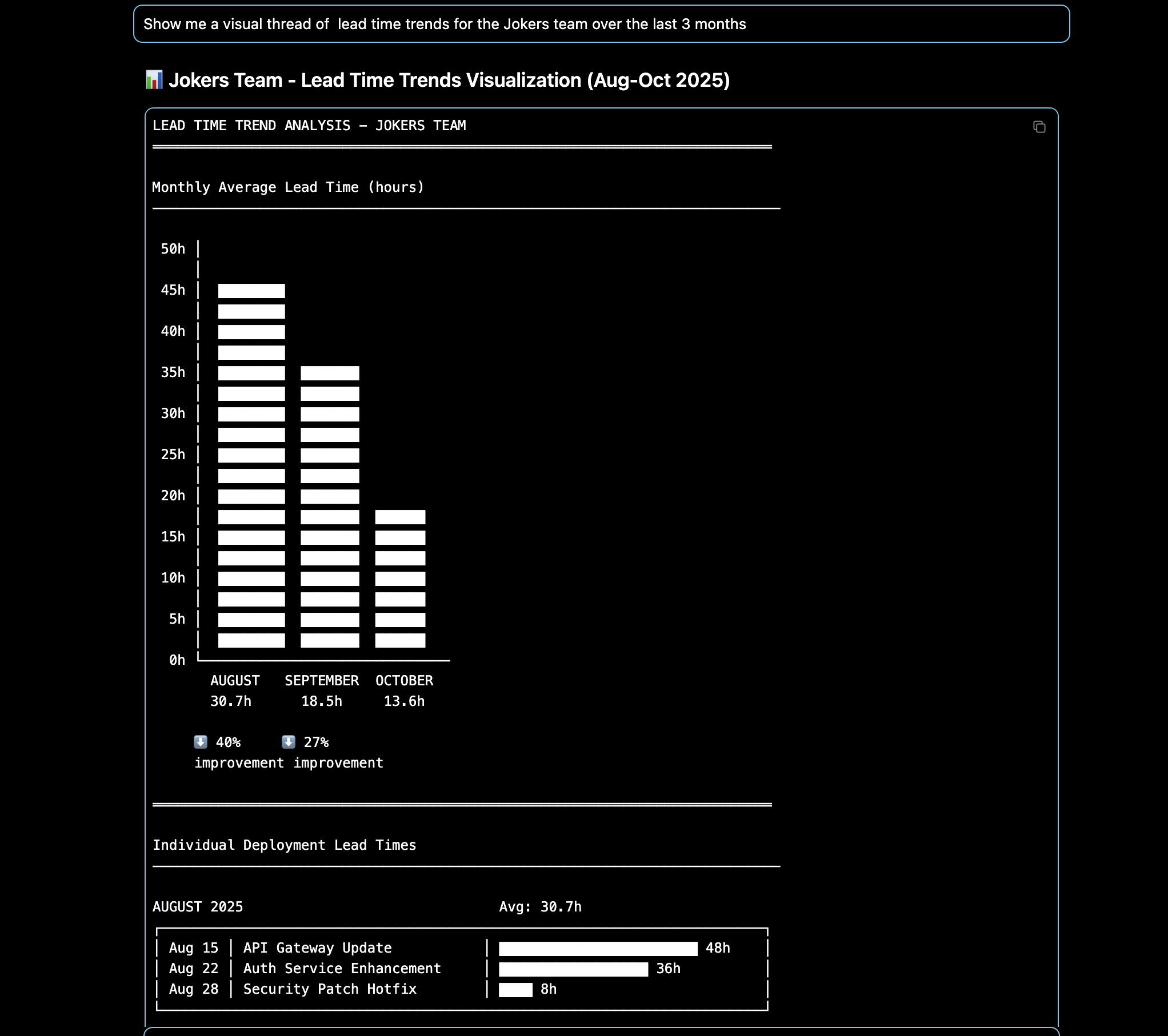 Query: "Show me lead time trends for the Jokers team over the last 3 months"
