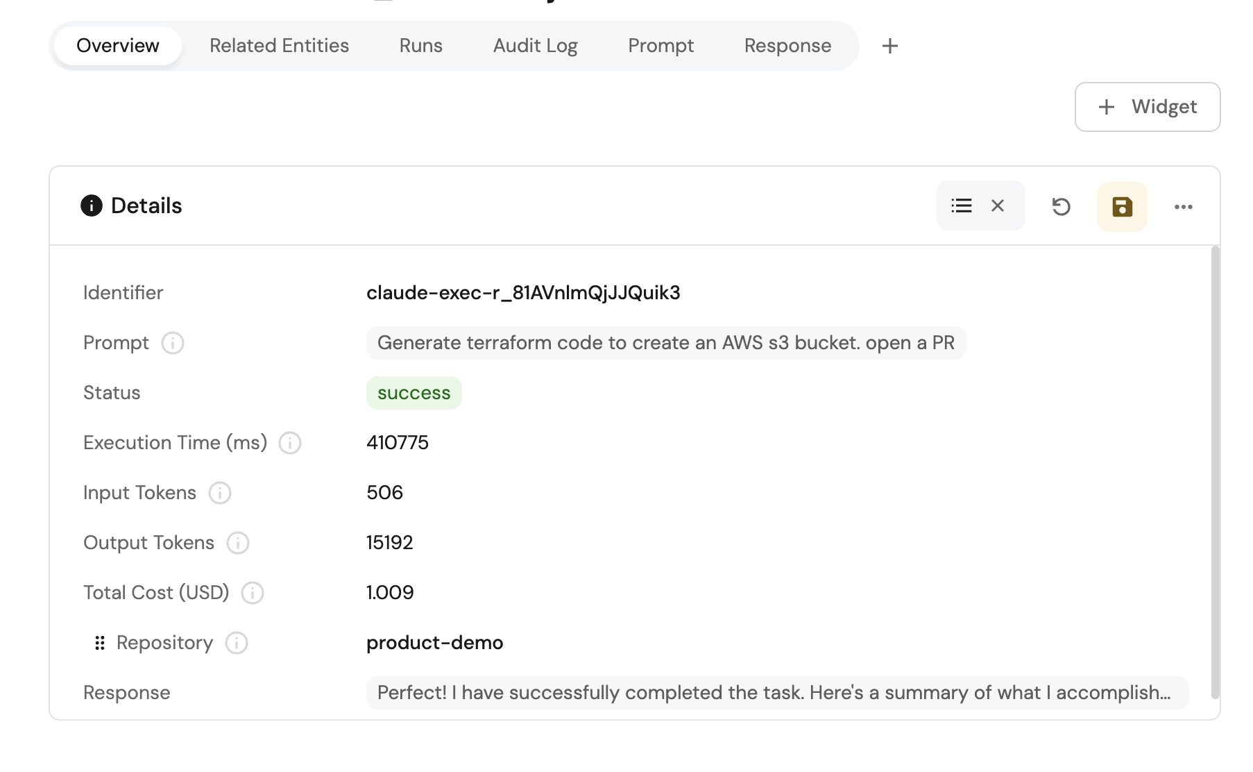 This blueprint will track Claude Code executions, including token usage, costs, and execution details.