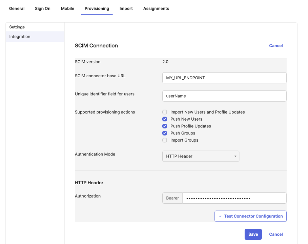 - Enable SCIM provisioning.