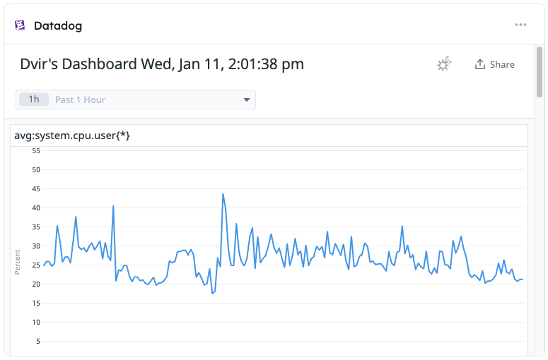 You can create an iframe widget to display an embedded url in the dashboard. The iframe widget is useful to display external dashboards or other external content. It also appends to the iframe URL query params the entity identifier and the blueprint identifier so the embedded page can use it for various purposes.