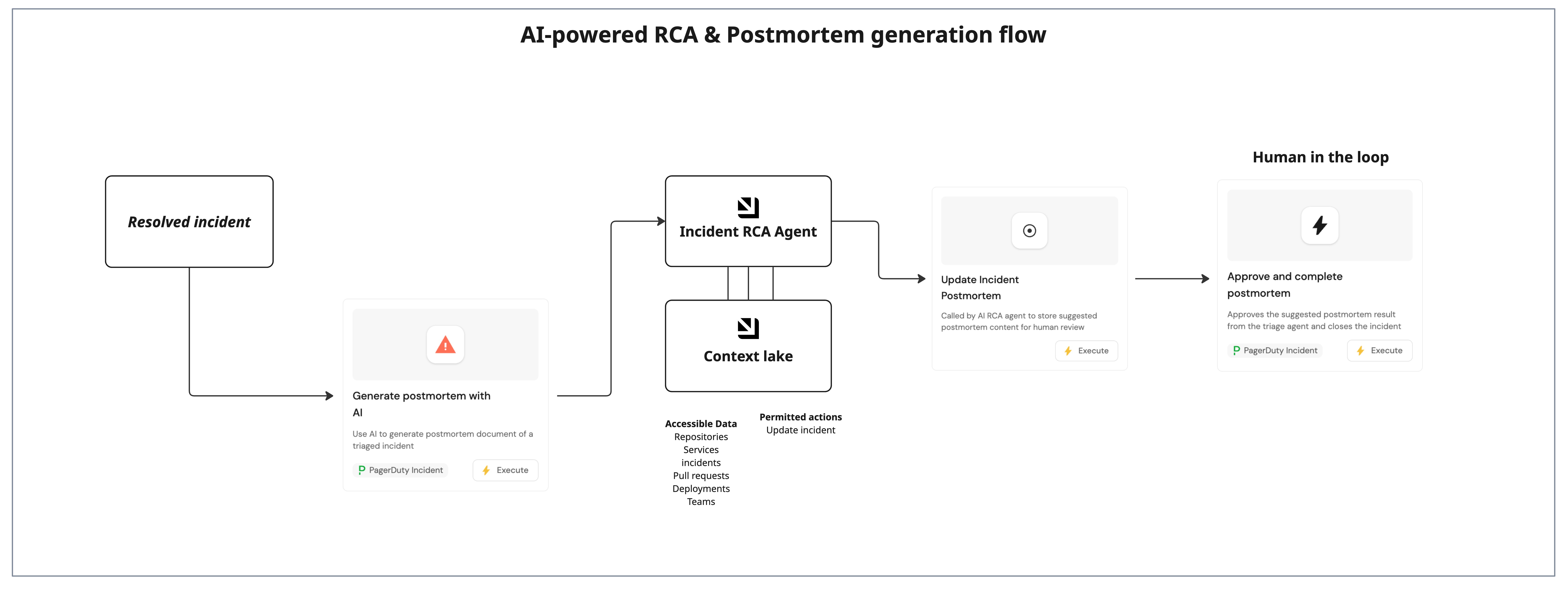 - Faster incident closure: generate postmortem drafts immediately after resolution while context is fresh.