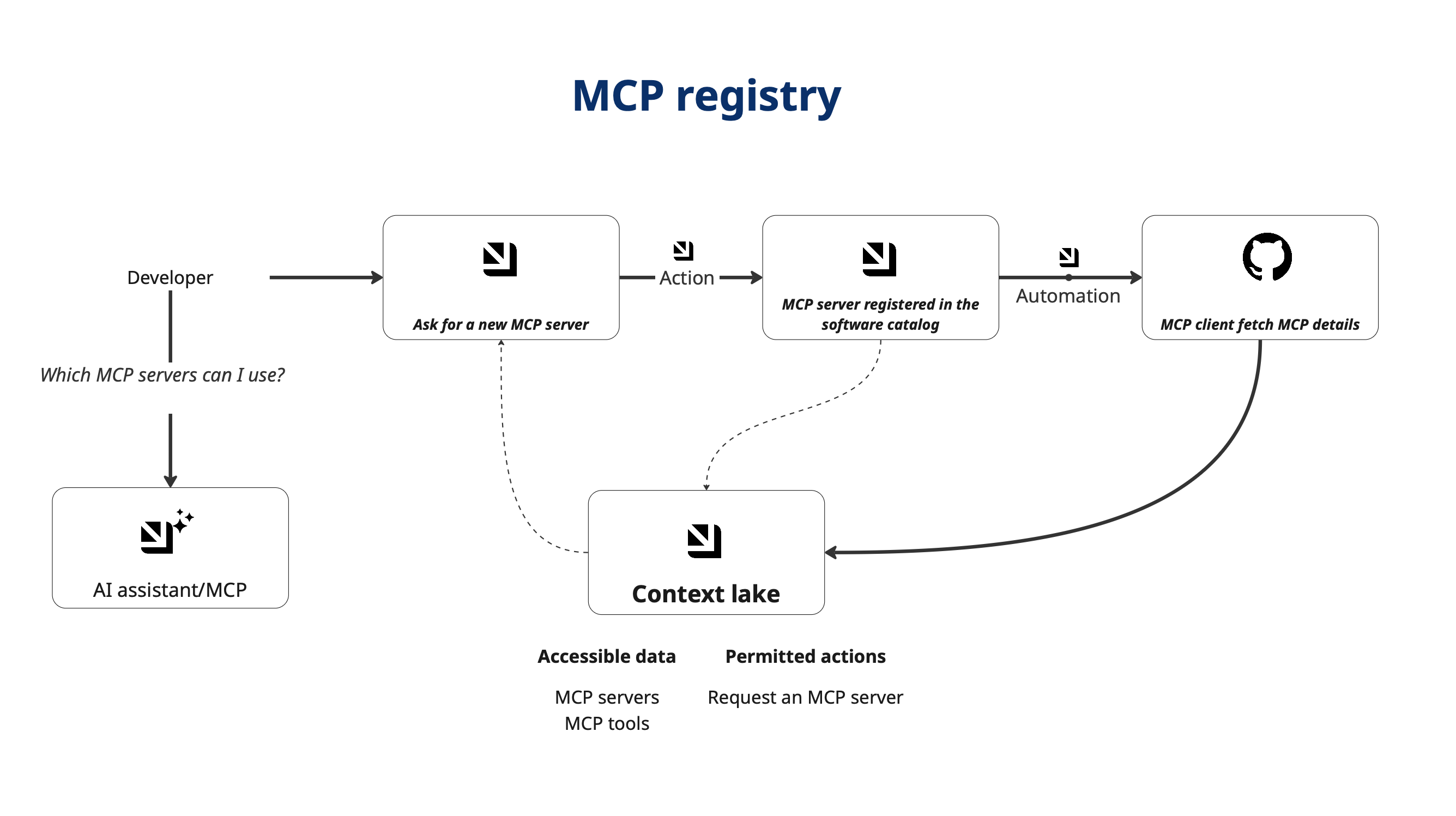 This action creates a new MCP Server entity with status: pending, allowing your team to track and manage MCP server requests.