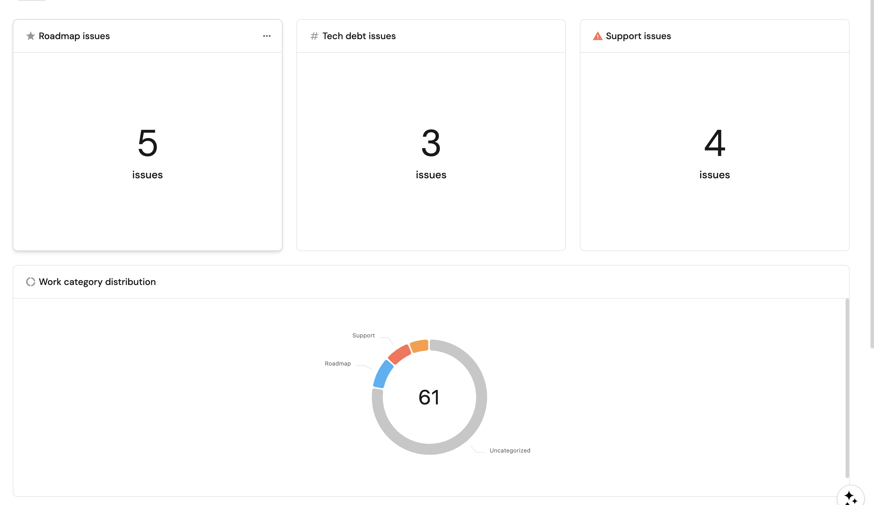 Each issue will now display a color-coded Work Category badge based on its labels. The priority order is Roadmap > Tech Debt > Support, so if an issue carries multiple category labels, the first match wins.